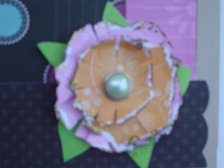 I took another piece of Bo Bunny paper with the same flowers and cut out a few and adhering them with pop dots over the matching flower.