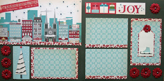 In addition to the embellishments created from the Silver Valley paper, I used two chipboard snowflakes. I painted them with white paint and then added a coat of Chandelier Glimmer Glam to make them shimmer. Another snowflake brad and two stickers saying Winter Wonderland” and “Dreaming of a White Christmas” completed the page. Friday, January 13, 2012